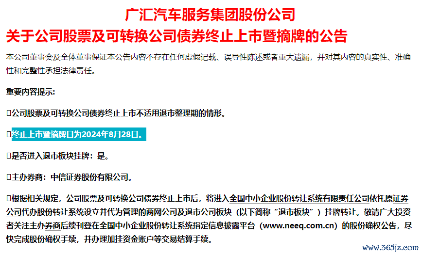 8月21日晚间,因为触发面值退市而停牌的广汇汽车公告,交易所8月21日决定公司股票及转债退市,摘牌日期为8月28日。